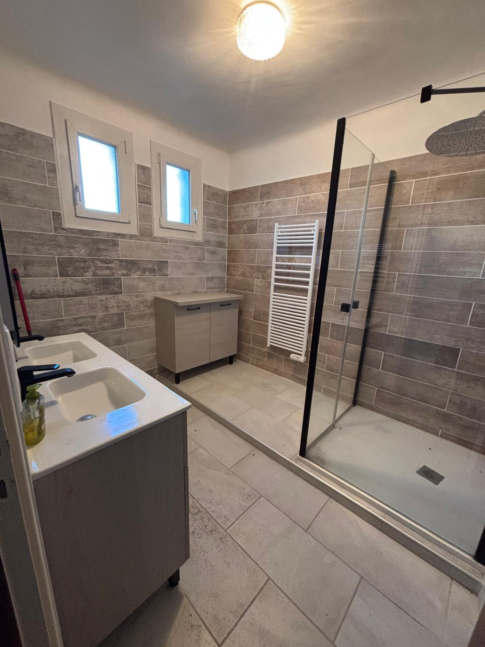 R+1 (environ 100 m²) : 3 chambres/bureaux de 8 à 12 m², un salon/séjour de 28 m², une cuisine aménagée et équipée de 13 m², une salle d'eau neuve de 7 m² et une grande terrasse en L.